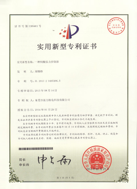 數(shù)顯閉環(huán)式電子張力器研發(fā)成功,同年被評為東莞市民營科技企業(yè),并獲得東莞市創(chuàng)新基金支持