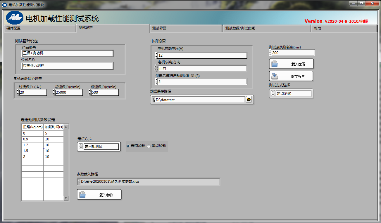 •定點測試:如下圖所示可以設定扭矩/轉速/電流在相對的時間進行加載測試。