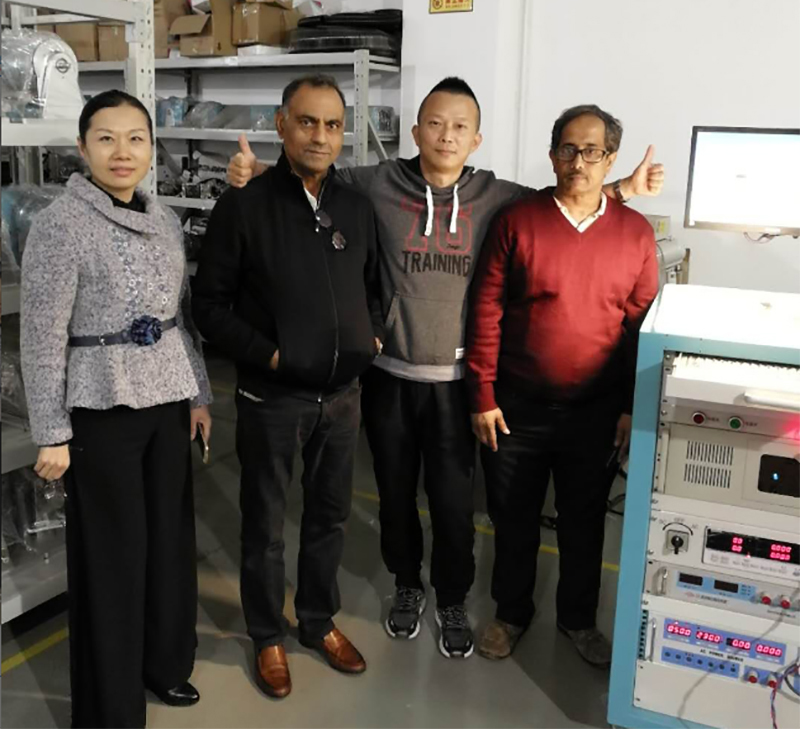2018 年1月27日, 印度Rexnord 電機公司的工程總監(jiān)K.C.Talwar先生一行來樟木頭工廠參觀并現(xiàn)場驗收他們采購的3套直流馬達測試系統(tǒng),人性化的人機工程界面獲得了客戶的高度贊賞。