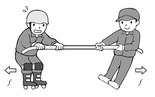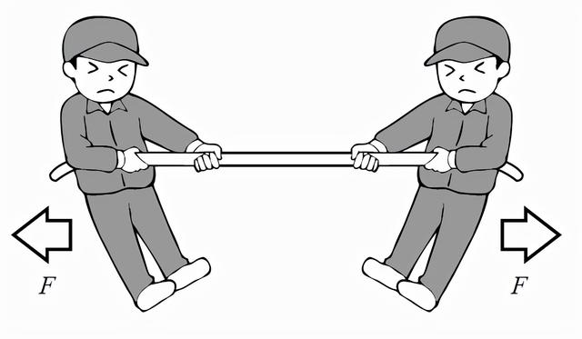 如果兩人都拉,則繩子上會(huì)有張力。在靜止?fàn)顟B(tài)下, 拉力(F)和被拉力(F)保持均衡, 產(chǎn)生的張力相同, 這很容易理解。